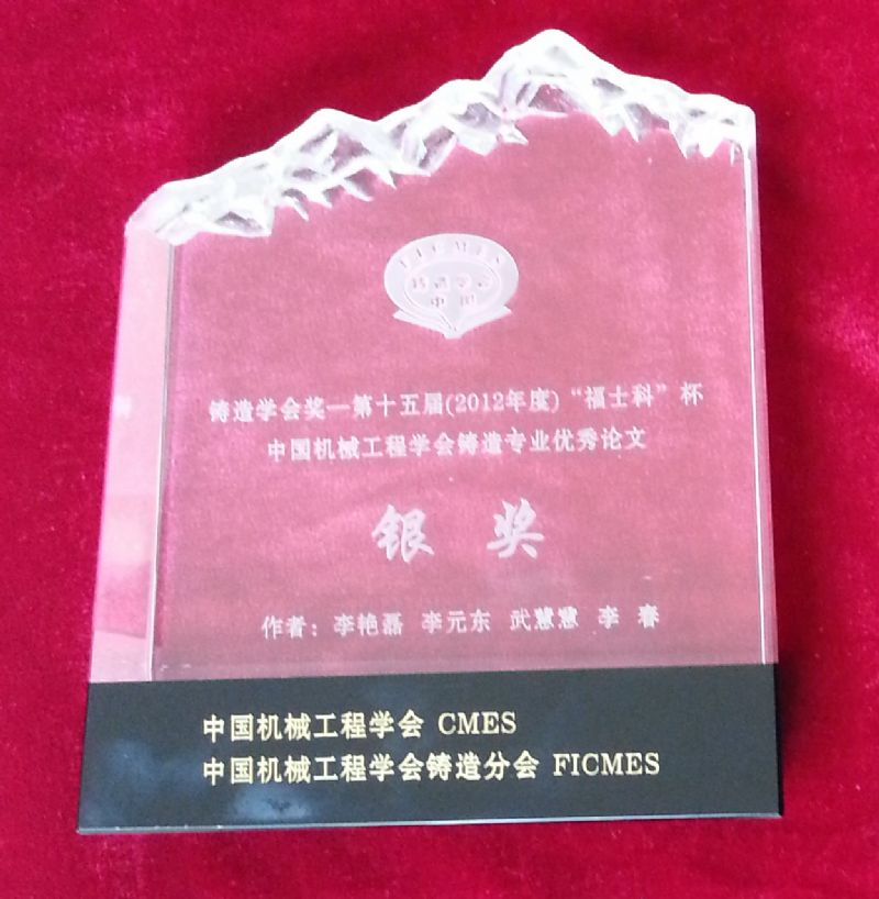 11月2日-5日,在山东济南举办的“中国铸造活动周”上,举行了第十五届“福士科”杯中国机械工程学会铸造专业优秀论文颁奖仪式。我室李元东教授指导的硕士研究生李艳磊同学(2012届)发表在《CHINA FOUNDRY》2012年第4期 论文“Microstructure characteristics and solidification behavior of wrought aluminum alloy 2024 rheo-diecast with self-inoculation method”(自孕育流变压铸变形铝合金2024组织特征及凝固行为)获得银奖。这也是我校材料学院研究生首次获得此殊荣。本次活动周同时举办 “第三届中国铸造终身成就奖与杰出贡献奖”颁奖、 学术与技术交流;国际铸造技术论坛等活动。