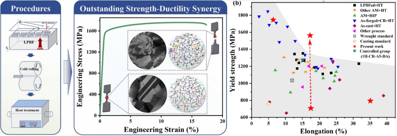 上述研究工作为扩大激光增材制造技术应用范围和突破金属材料的强-塑不匹配提供了新的思路。研究工作得到了国家重点研发计划(2017YFA0700703)、甘肃省自然基金青年基金(21JR7RE184)、甘肃省产业支撑计划(22YF7GA156)和甘肃省优秀研究生“创星之星”项目(2022CXZX-386)的支持。(撰稿:周宏伟,审核:石玗)