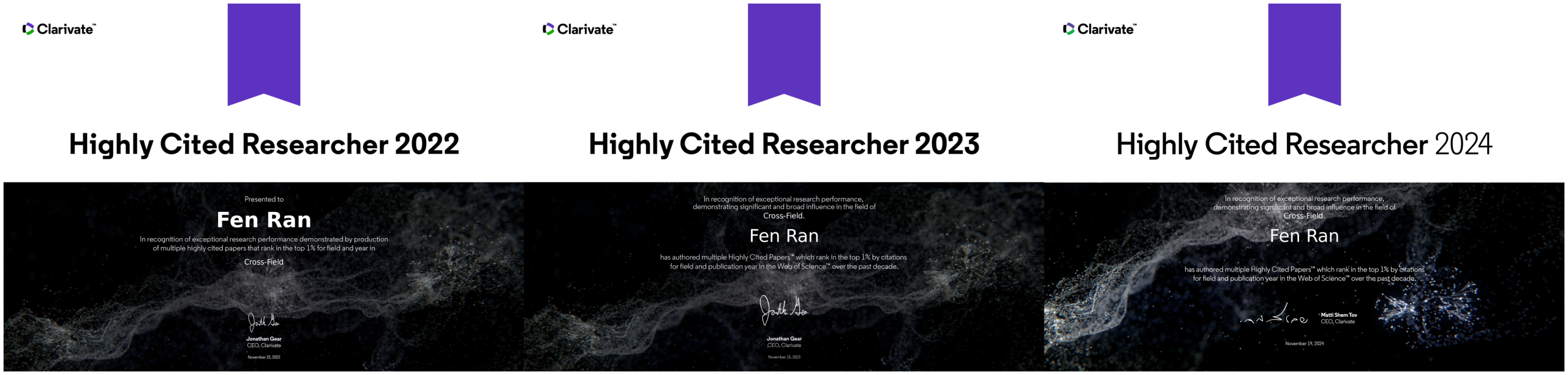 “全球高被引科学家”由全球领先的数据分析公司科睿唯安(Clarivate)发布,面向全球科学家每年评选一次,遴选全球高校、研究机构和商业组织中对所在研究领域具有重大和广泛影响的顶尖科学人才,入选科学家在过去十年间均发表了多篇ESI高被引论文,对所在学科产生了深远影响和卓越的学术贡献。冉奋教授多项成果在Nature Communications、Materials Science & Engineering R-Reports等国内外高水平期刊发表,其中ESI高被引论文30余篇,热点论文2篇,分布在材料科学、工程学、化学等学科。